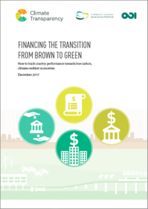 On the occasion of President Macron’s One Planet Summit on 12 December, Climate Transparency and its partner the Overseas Development Institute release the paper “Financing the transition from brown to green: How to track country performance towards low carbon, climate-resilient economies”. It maps key actors in financing the transition and develops a new categorization of tools available for public institutions to shift from brown to green finance. It also presents nine indicators to assess country progress which can inform the Facilitative Dialogue/Talanoa Dialogue leading up to the 2023 Global Stocktake.