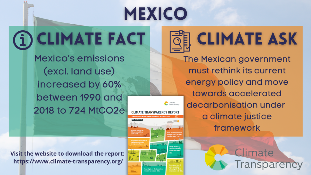 On 14 December 2021 the Mexican partner of Climate Transparency, Iniciativa Climática de México (ICM), organised the online event entitled “A fair coal phase-out – a needed dialogue for Mexico, Chile and South Africa“ to share key findings of the recently published policy paper “Energy Transition in Mexico: A fair coal phase-out for a Paris compatible scenario in Mexico”. The policy paper identifies coal phase-out as a priority measure for Mexico to meet climate change commitments and points out social, economic and environmental impacts of the coal sector in Coahuila, Mexico’s main coal-producing region.