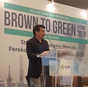 Fabby Tumiwa, Executive Director of IESR, opening the launch of Brown to Green Report 2019 in Jakarta