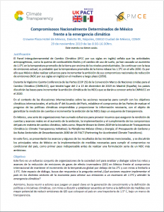 Iniciativa Climática de México (ICM) and Climate Transparency in alliance with UK PACT (Partnering for Accelerated Climate Transitions) and the Plataforma México Clima y Energía (PMCE) co-organized the forum: “Nationally Determined Contribution of Mexico in face of the climate emergency” on 29 November 2019, during which the Brown to Green Report 2019 was launched.