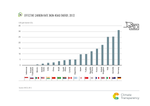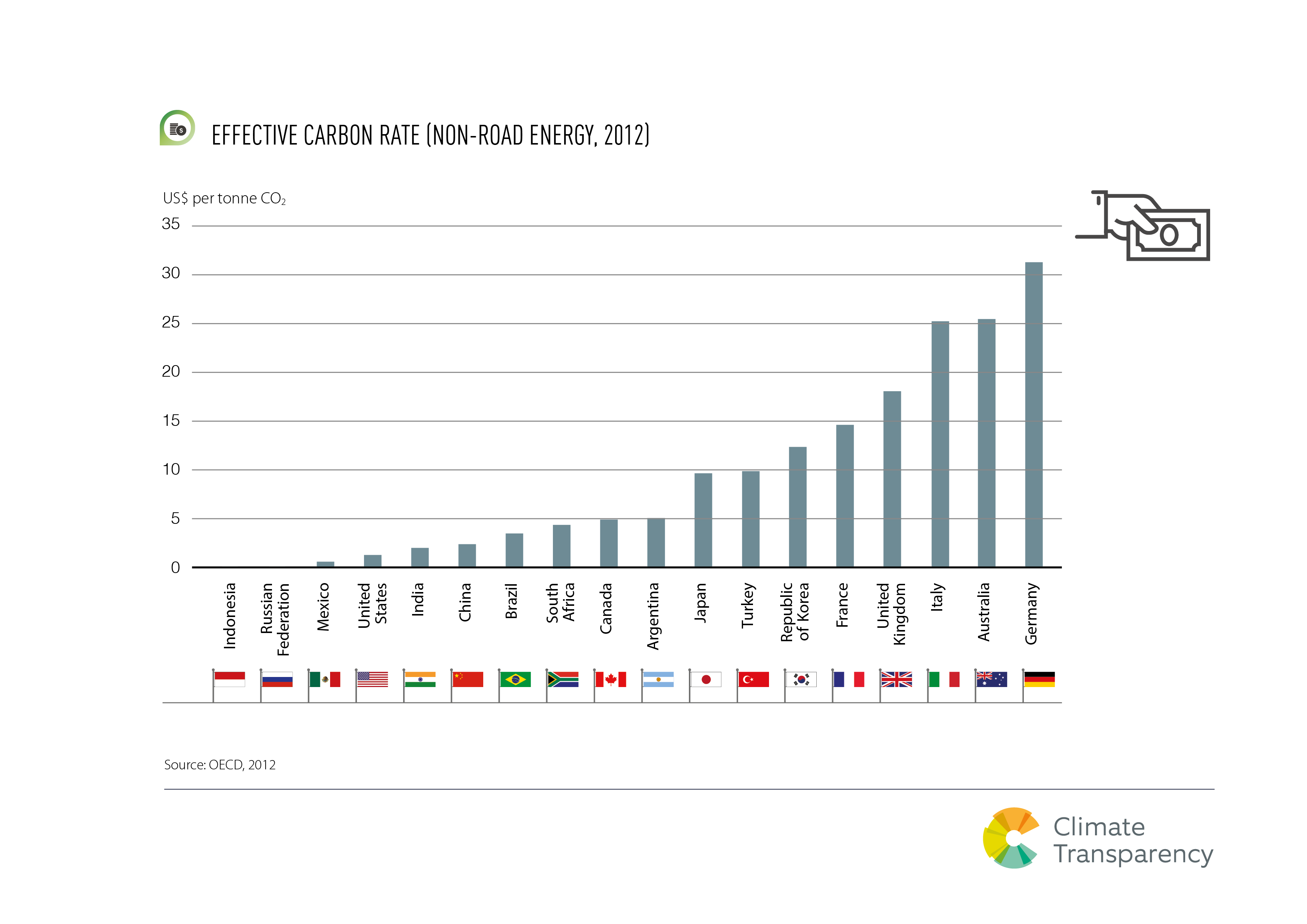 Compares for all G20 countries effective carbon rate (non-road energy) in USD per tonne CO2.