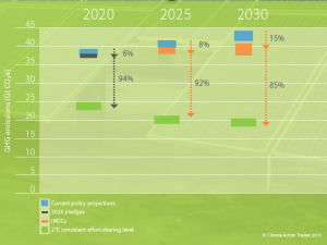Beyond the G20, more than 140 countries have submitted INDCs towards a Paris agreement. If these were all implemented, they would lead to a “best guess” global temperature increase of 2.7°C in 2100, with a 66% likelihood of staying below 3°C, according to the assessment of the CAT. There is therefore a clear need, and room, for enhanced ambition in climate mitigation by G20 countries.