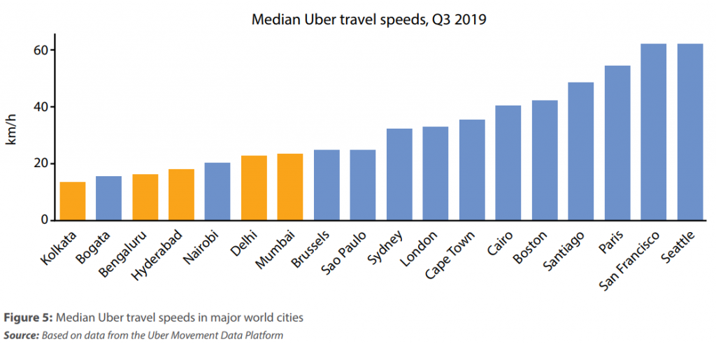 In spite of India having an extremely low level of car ownership per capita, at just 25 cars per 1000 people, compared to 400–600 cars per 1000 people in Europe and more than 800 in the United States, India’s streets are already the most congested in the world. This is not just an issue of convenience: the economic costs of congestion are massive.