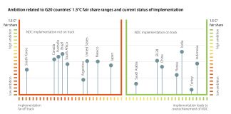 Ambition related to G20 countries’ 1.5°C fair share ranges and current...