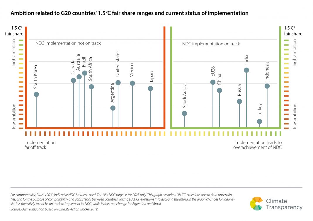 Ambition related to G20 countries’ 1.5°C fair share ranges and current status of implementation Ambition related to G20 countries' 1.5°C fair share ranges and current status of implementation