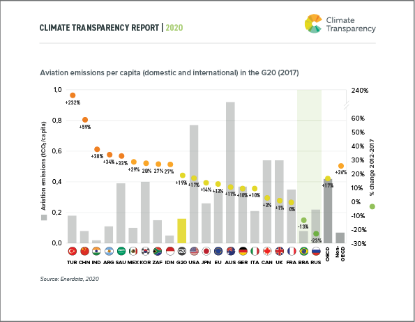 • Aviation emissions per capita (domestic and international) in the G20 (2017)