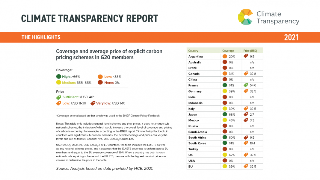 Coverage and average price of explicit carbon pricing schemes in G20 members Coverage and average price of explicit carbon pricing schemes in G20 members