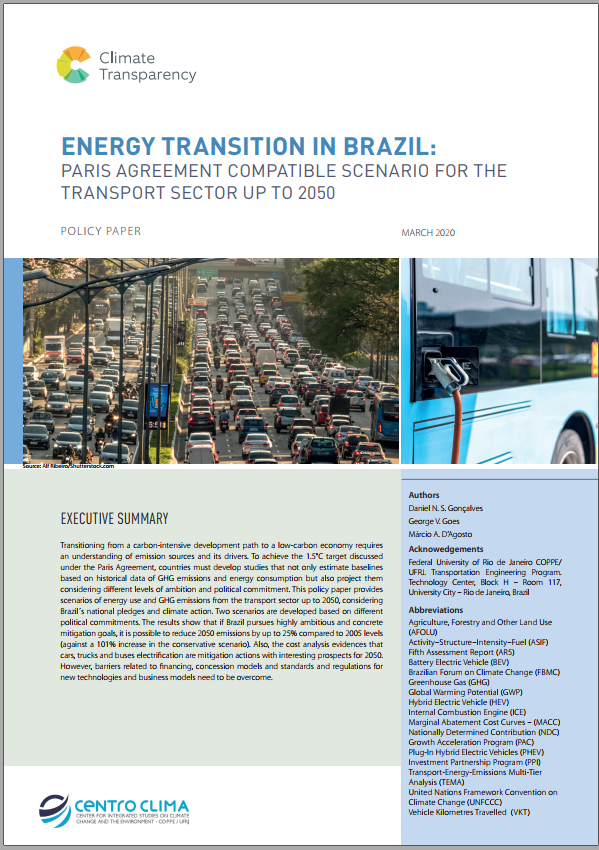 This policy paper provides scenarios of energy use and GHG emissions from the transport sector up to 2050, considering Brazil´s national pledges and climate action. Two scenarios are developed based on different political commitments.