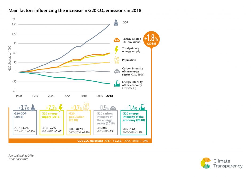 • Main factors influencing the increase in G20 CO2 emissions in 2018