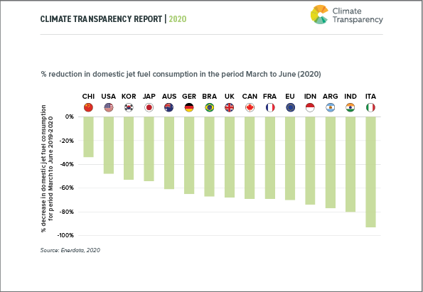 • Reduction in domestic jet fuel consumption in the period March to June 2020