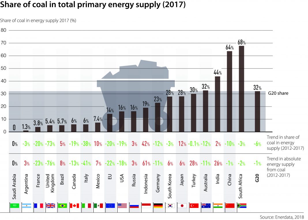 Share of coal in total primary energy supply, 2017